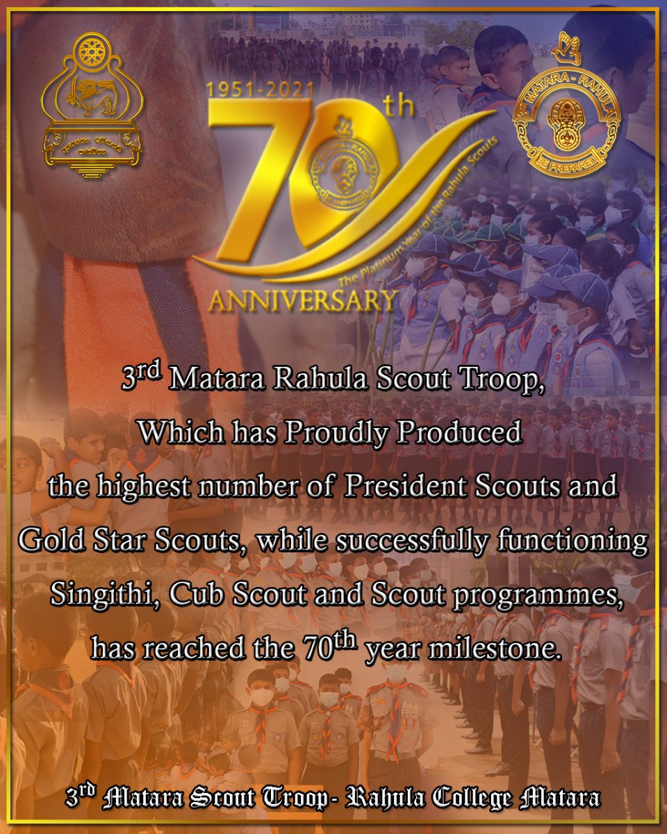 70th Year Milestone – Scout Troop Featured, Grade 1 - 5, Grade 12- 13, Grade 6 - 11, Notice BoardBy K. P. D. MadhukaSeptember 4, 20213rd Matara Rahula Scout Troop has reached the 70th year milestone