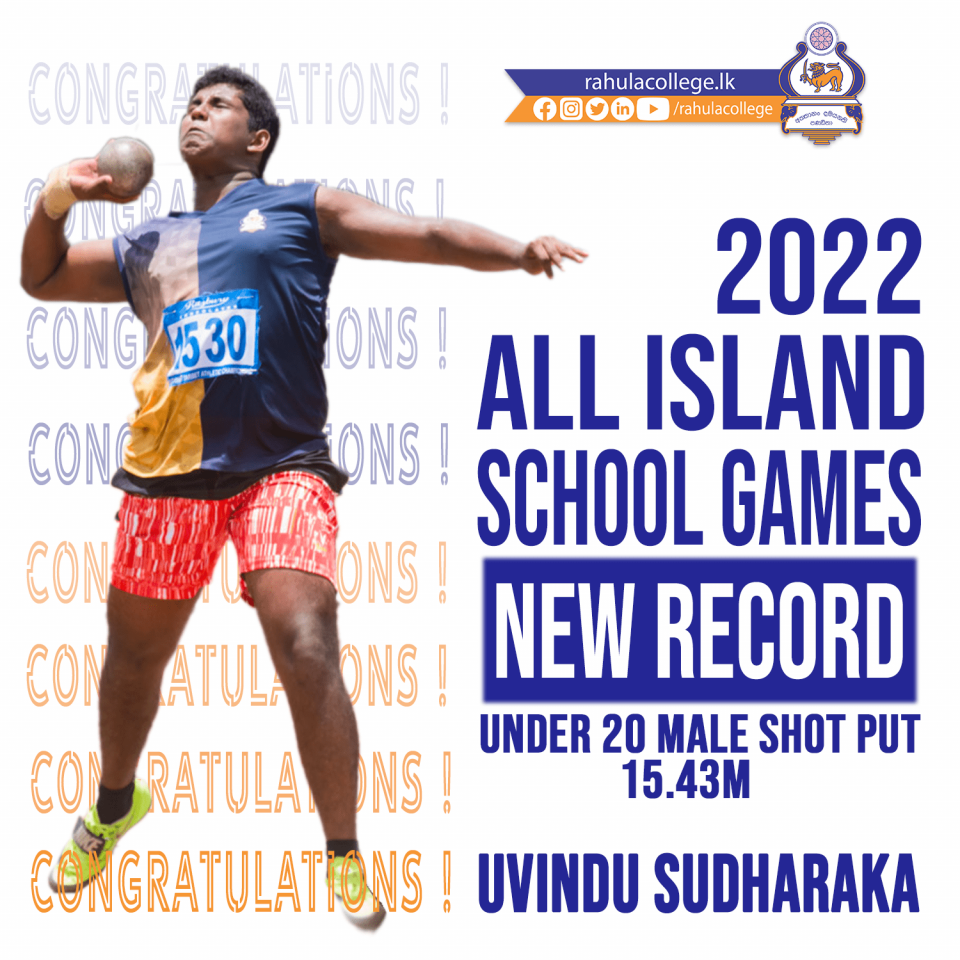 New Record at All Island School Games 2022 Featured, Grade 1 - 5, Grade 12- 13, Grade 6 - 11, Notice BoardBy Tharindu RoshanDecember 3, 2022Uvindu Sudharaka set a new record at the all-island school games in 2022 on the shot put with 15.43m.