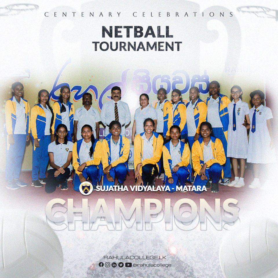 Centenary Celebrations. Invited Schools Netball Tournament was held between 10 schools. Sujatha Vidyala, Matara won the final and became Champions against Southland College, Galle. The best player of the tournament : Amasha Wijegunathilake, Sujatha Vidyalaya, Matara. The best shooter of the tournament : Rehani Wijesinghe, Sujatha Vidyalya, Matara. Sujatha Vidyalaya, Matara | Southlands College, Galle…