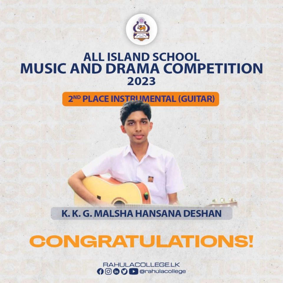 Congratulations K.K.G.Malsha Hansana Deshan on wining the 2nd place instrumental – guitar in all island music and drama competition 2023.