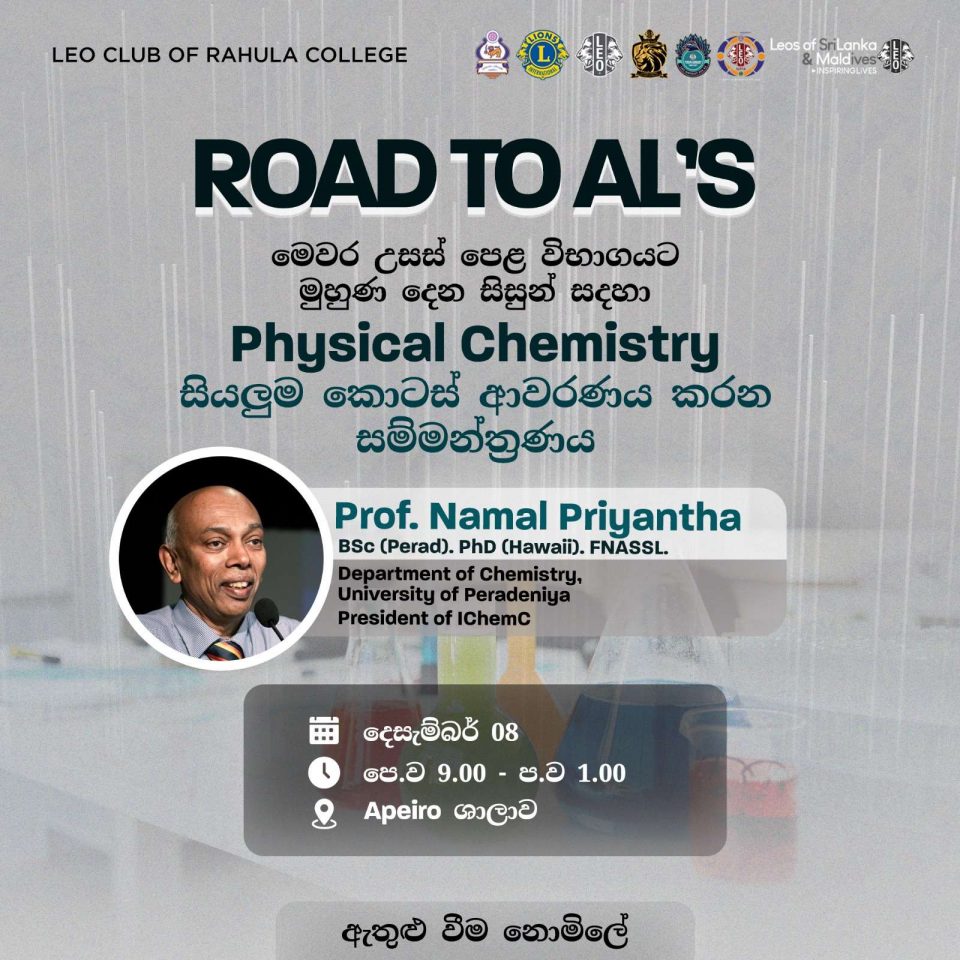 “Road to A/Ls” Chemistry Seminar for A/L Students