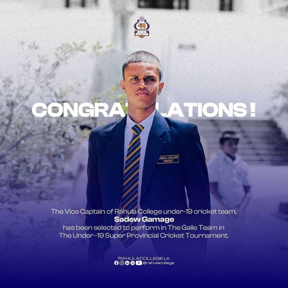 The Vice Captain of Rahula College Under- 19 Cricket Team, Sadew Gamage has been selected to perform in The Galle Team in The Under -19 Super Provincial Cricket Tournament.
