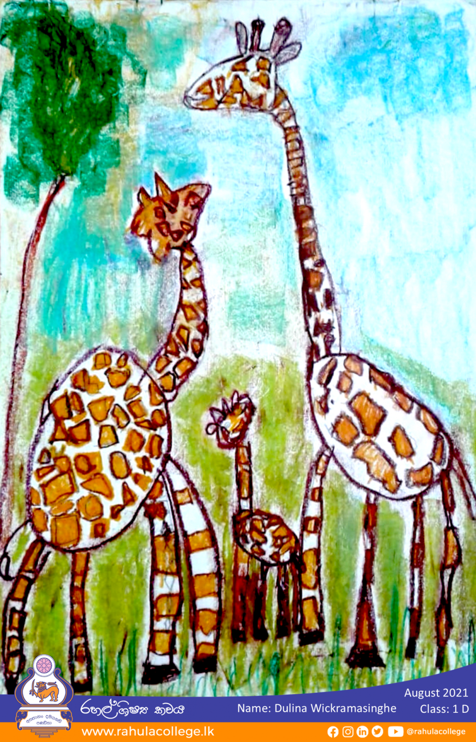 ZoomDetails Giraffe FamilyArtsBy K. P. D. MadhukaAugust 31, 2021Leave a commentDulina Wickramasinghe Class: 1 D