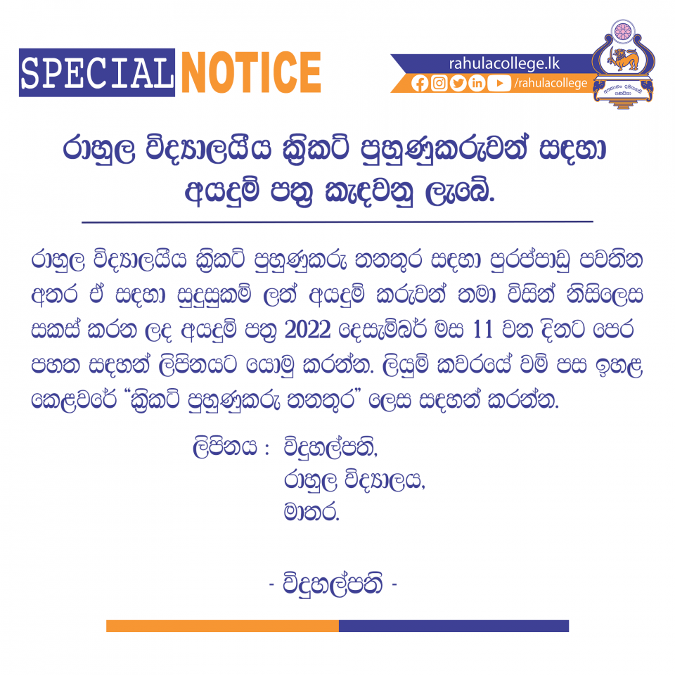Rahula College won the Championship of Under 20 boys’ and Overall Runner-up. Congratulations to the teaching dept, the coaches, and the boys !!! Under 20 Boys’ Tharushka Bhashitha – 100m : Gold | 200m : Silver Uvindu Sudharaka – Shot Put : Gold ( New Meet Record ) Ushara Sandeepa – Discus Throw : Silver…