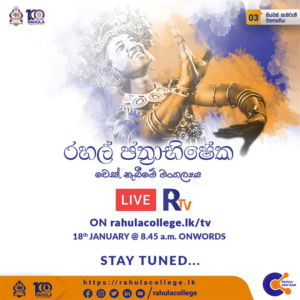 Parallel with the centenary celebrations of Rahula College, Ves Ceremony of 39 students will be held at the school premises on the 18th of January 2023.