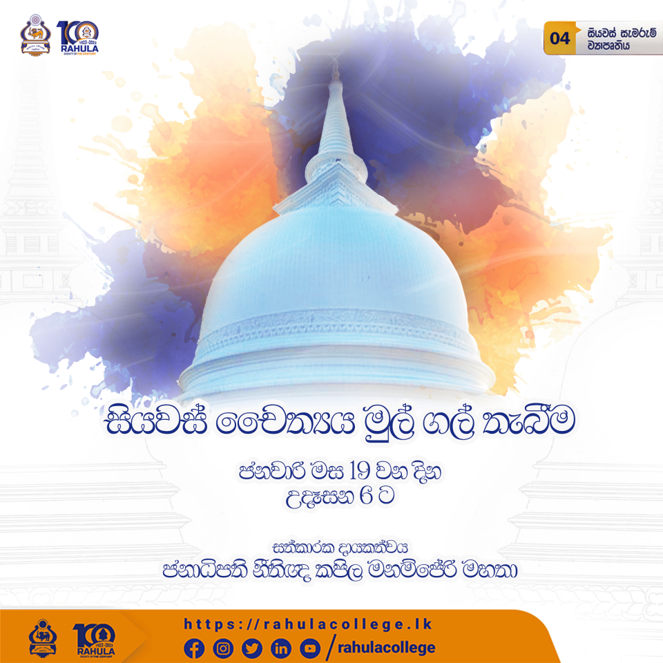Siyawasa Sthoopa Foundation Stone laying will be held on the 19th of January 2023 at the school temple premises. The host contribution is Presidential Lawyer Mr. Kapila Manamperi.