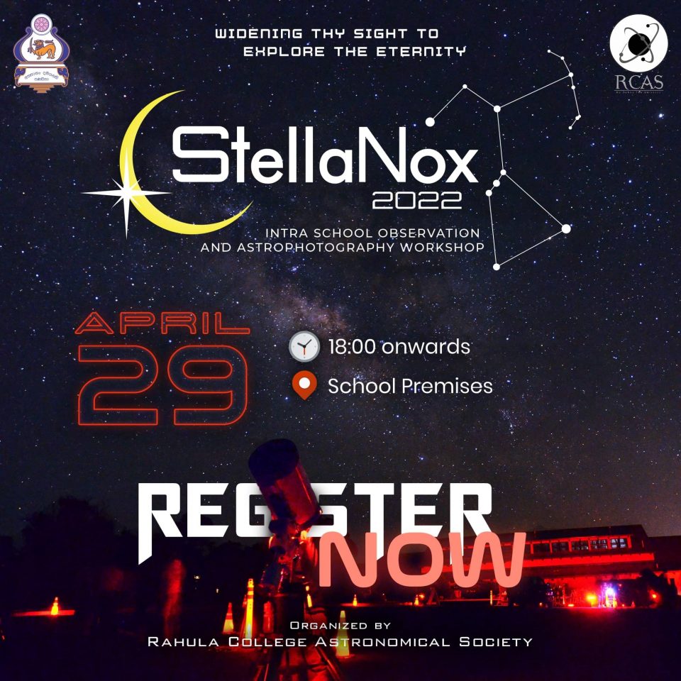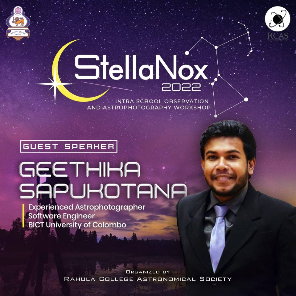 StellaNox 2022Intra-school Observation and Astrophotography Workshop We are extremely delighted to be introducing our guest speaker for the event, Mr. Geethika Sapukotana who is an experienced astrophotographer constantly engaging in deep sky observation and astrophotography.