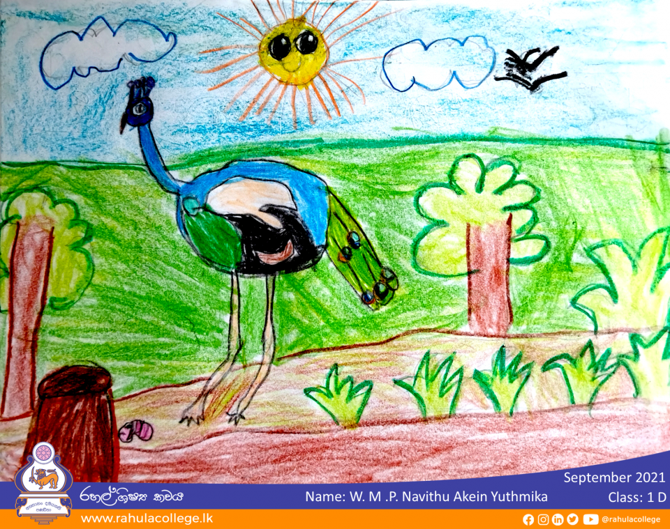 ZoomDetails ලස්සන මොනර හාමිArtsBy K. P. D. MadhukaSeptember 22, 2021Leave a commentW. M. P. Navithu Akein Yuthmika Class: 1 D