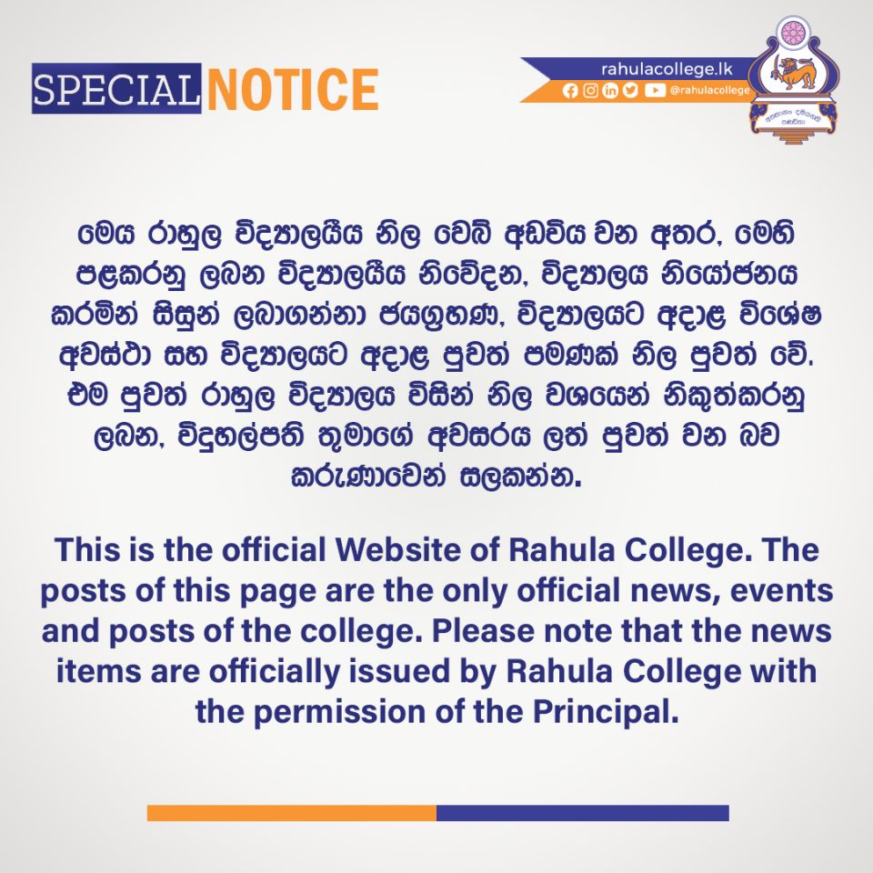 රාහුල විද්යාලය විසින් නිල වශයෙන් නිකුත් කරන පුවත්